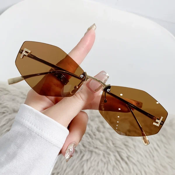 2025 New Frameless Letter F Diamond-set Polygonal Sunglasses Fashionable Street Shot Sunglasses Women 90271