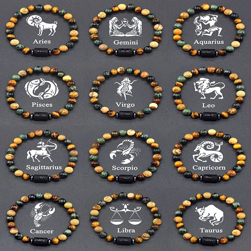12 Zodiac Constellation Signs Bracelets for Men Women Tiger Eye Sparro |