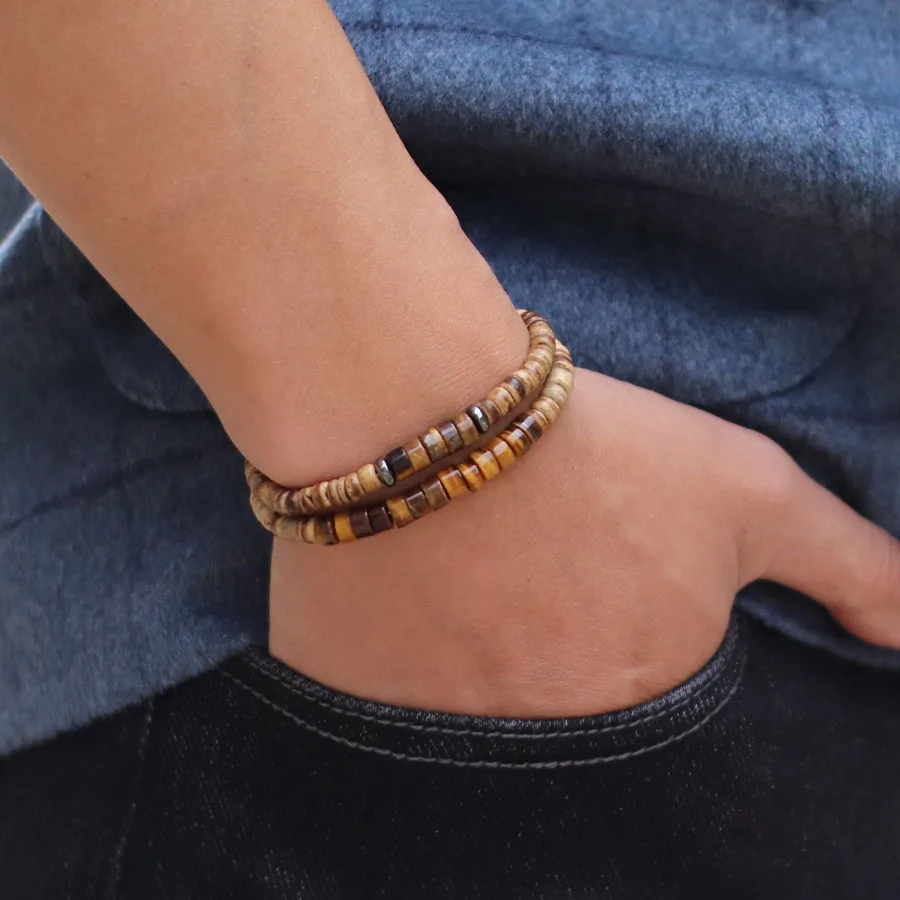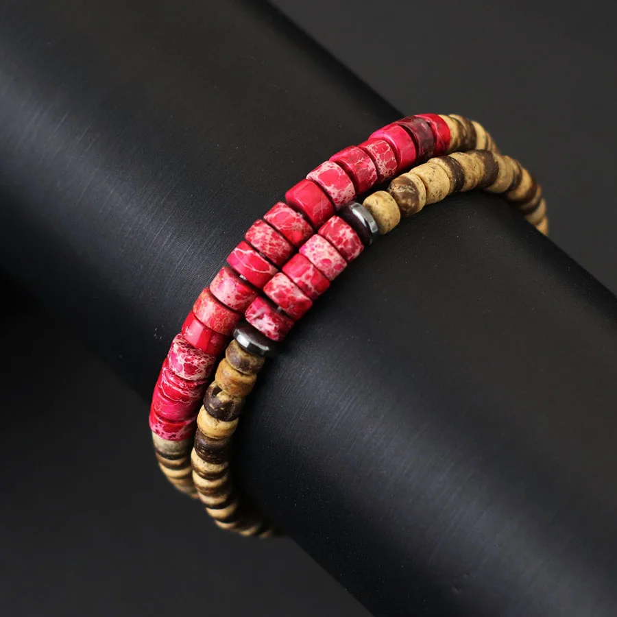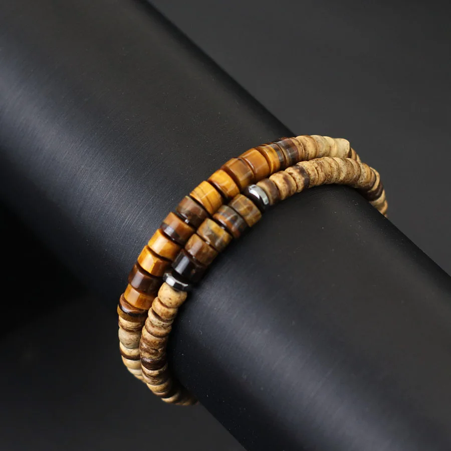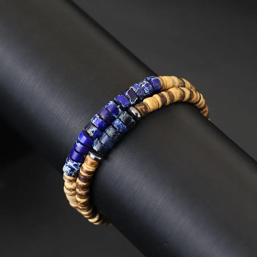 2Pcs Natural Coconut Husk Beads Bracelet Set Grade A Emperor Stone Strand Braslet Outdoor Sports Camping Cycling Accessories