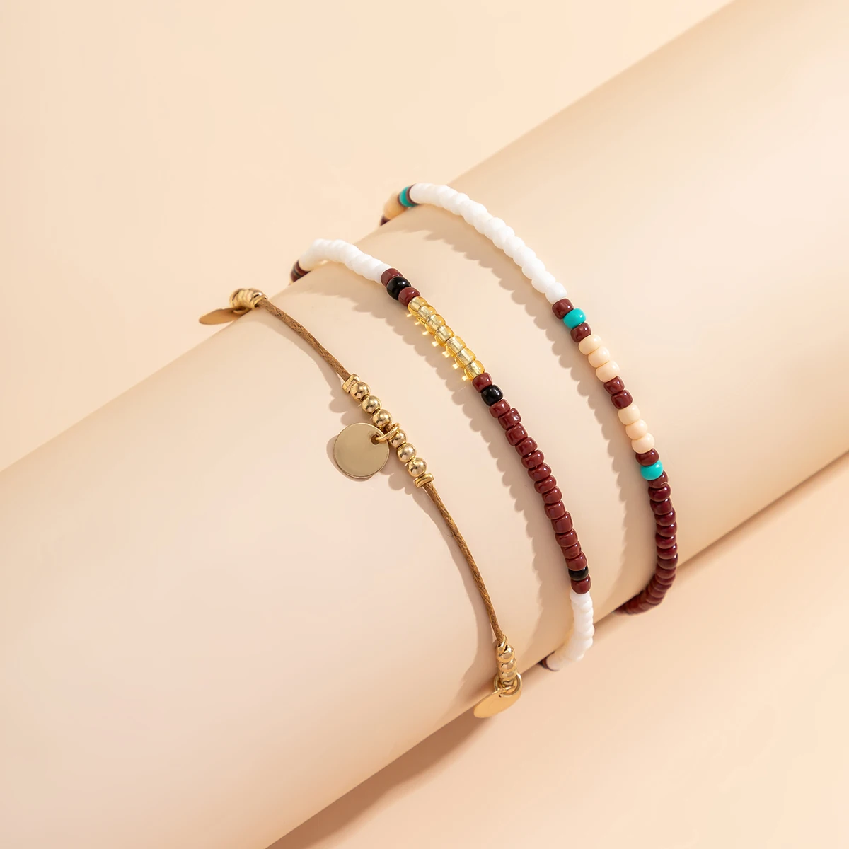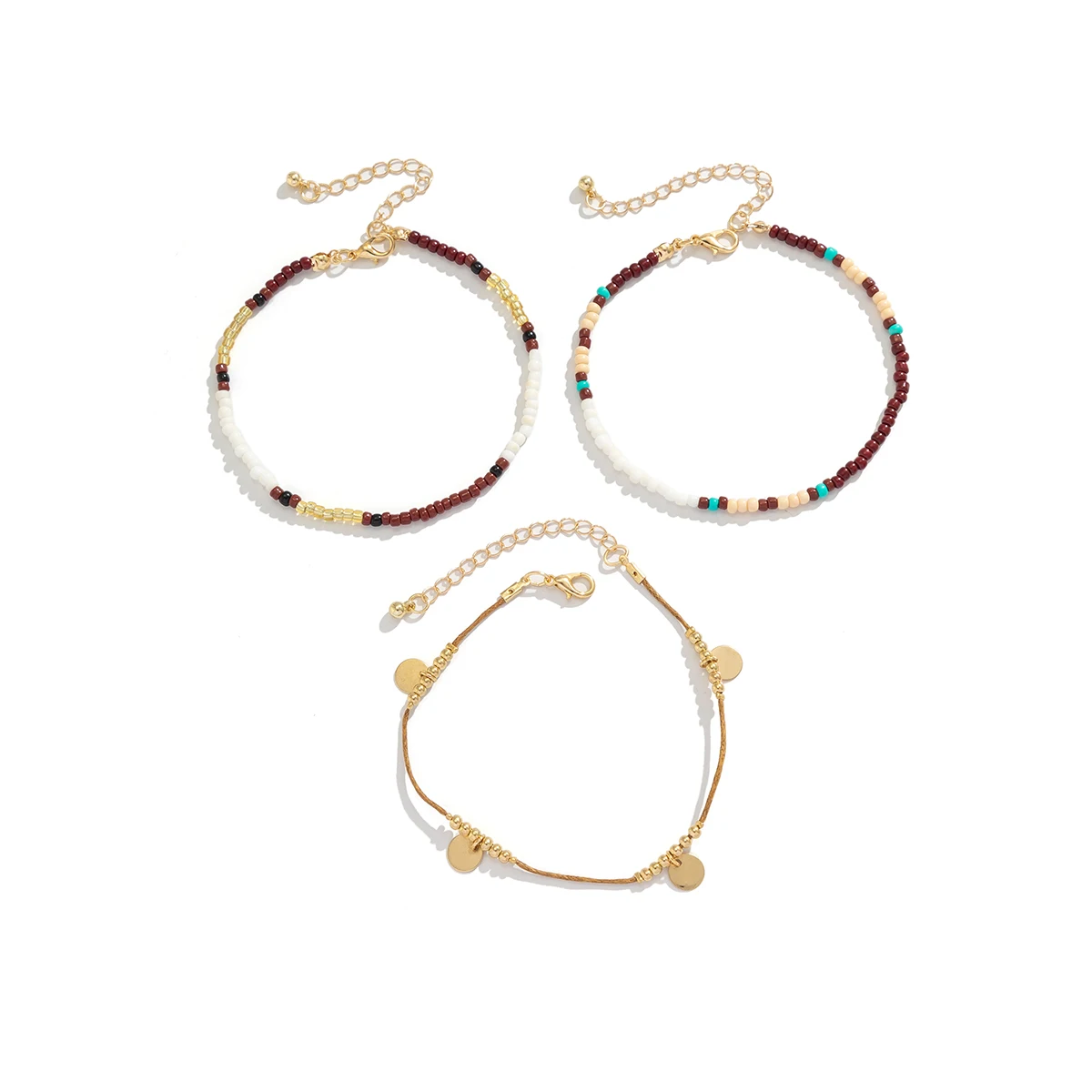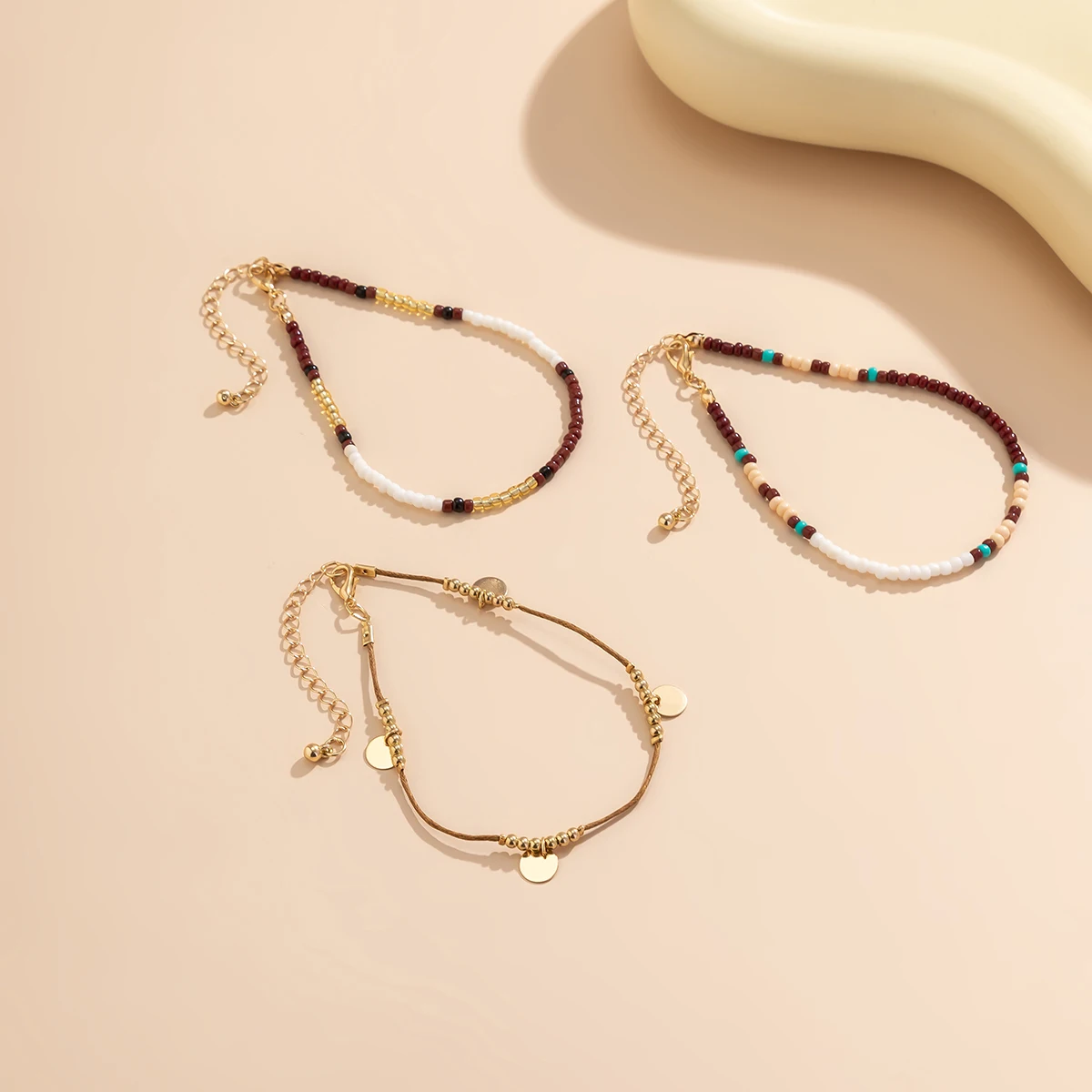 3Pcs/Set Bohemian Rice Beads Anklets for Women Vintage Trend Round Sequin Feet Chain Summer Beach Barefoot Jewelry Accessories