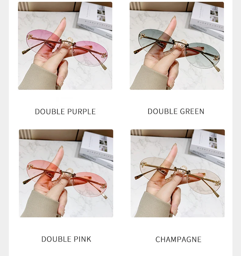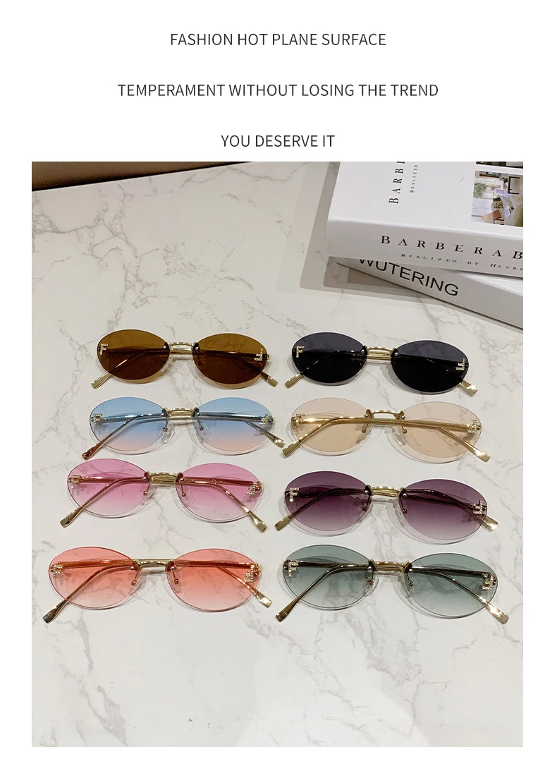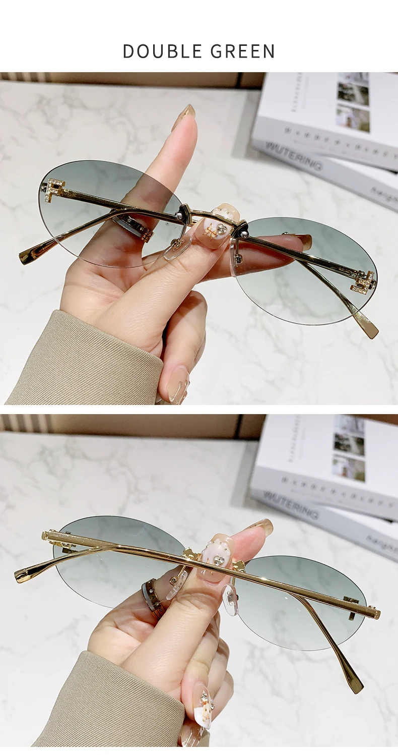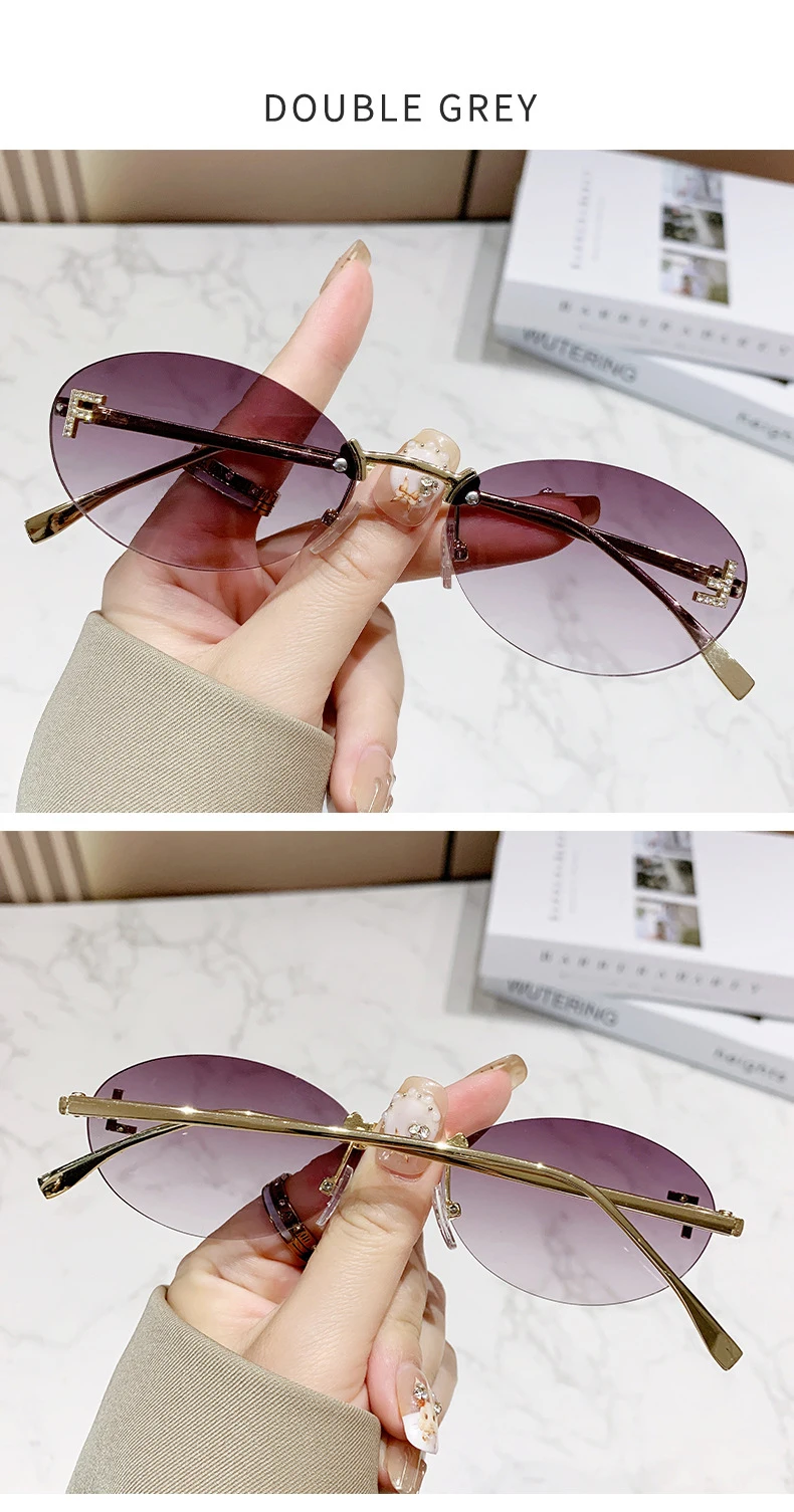 Elegant Diamond Oval Sunglasses Male Letter “F” Rimless Sunglasses Female