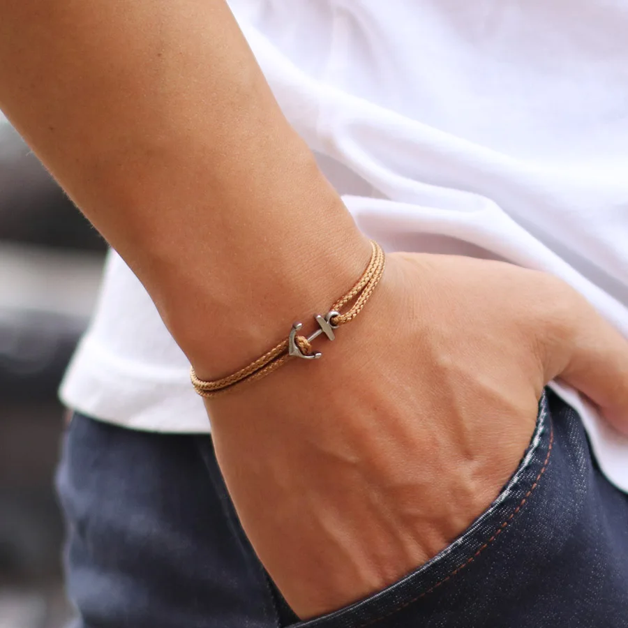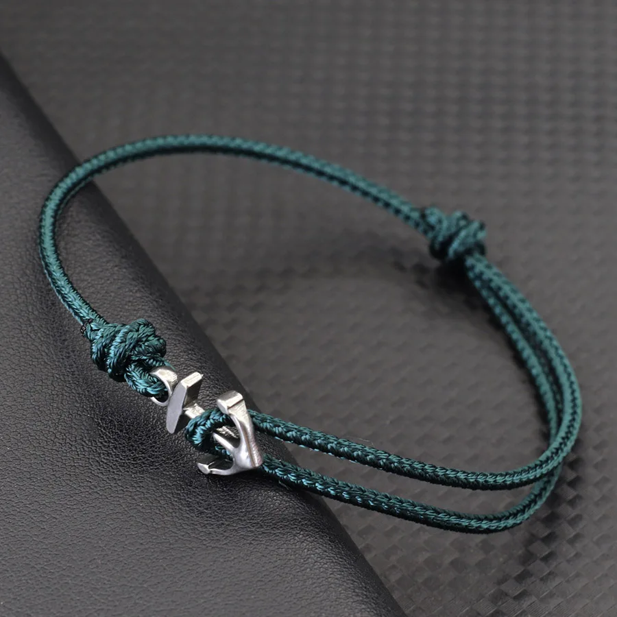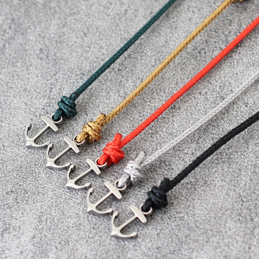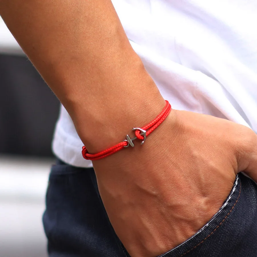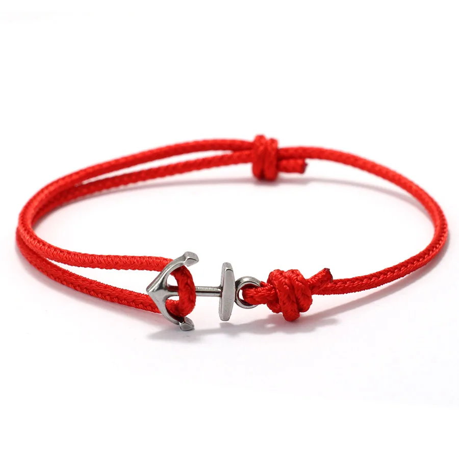 Grade A 2mm Thin String Lucky Red Bracelet Men Stainless Steel Beach Nautical Anchor Braslet Outdoor Sports Cycling Accessories
