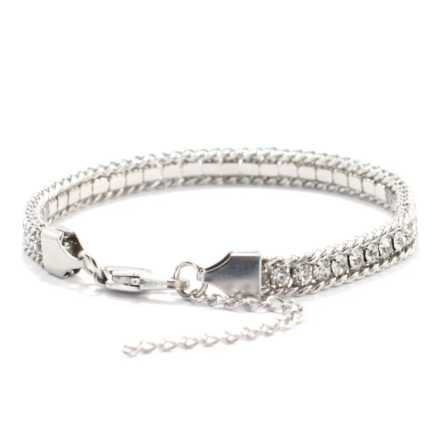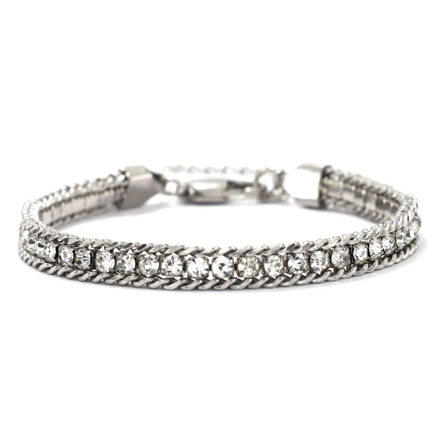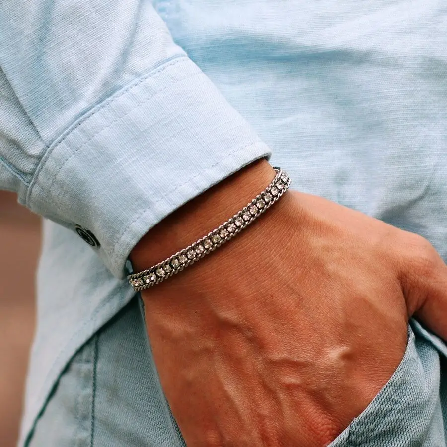 Luxury Men Tennis Bracelet Stainless Steel White Zirconia Chain Link Braslet Adjustable Gifts For Him Armband Herren Accessories