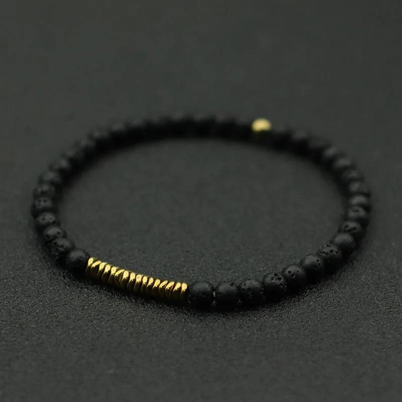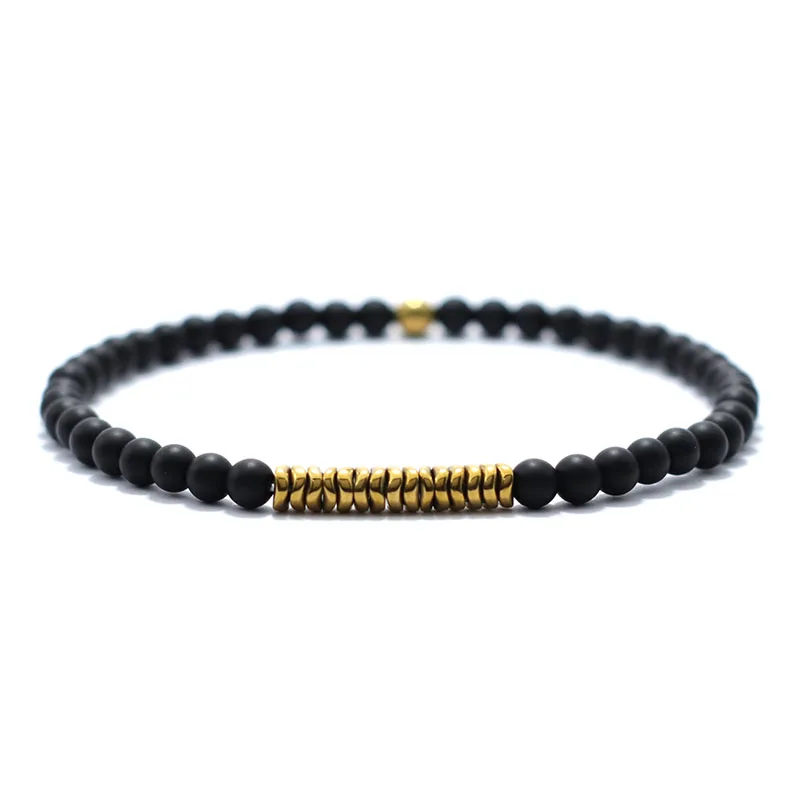 New 4mm Bracelet Men Antique Gold Color Hematite Stone Braclet Natural Wooden Braslet Homme Meditation Beaded Brazalete Pulsera