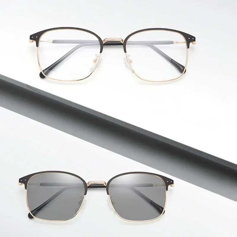 Photochromic Frameless Eyeglasses for Men Fashion Glasses Anti Radiation Eye Sunglasses for Men Korean Glasses Rectangle Compute